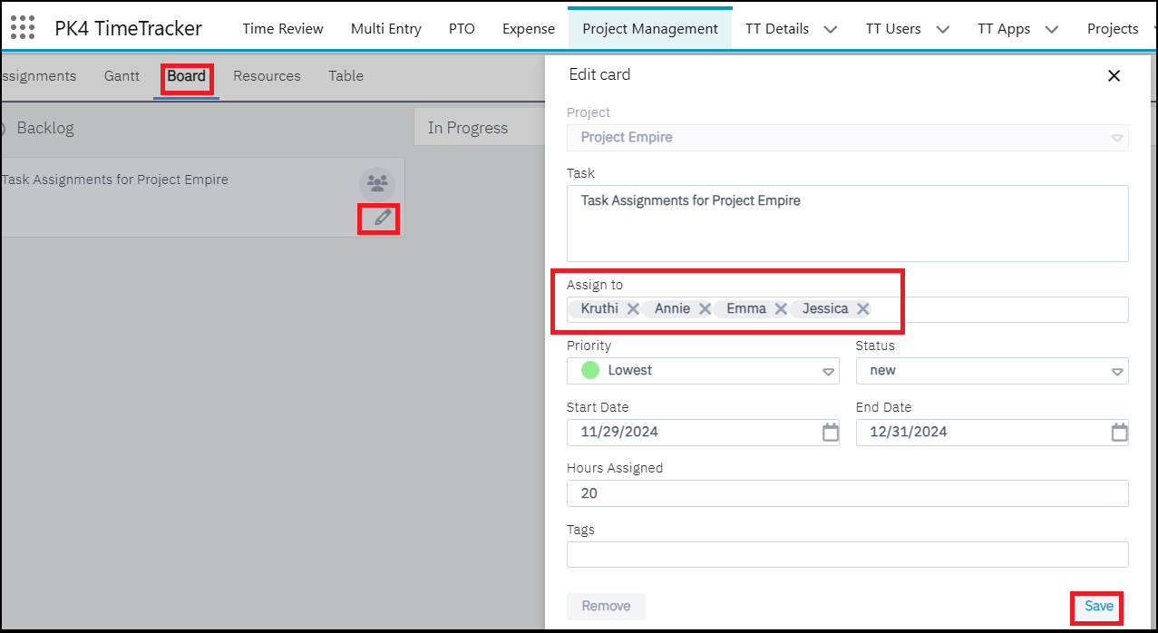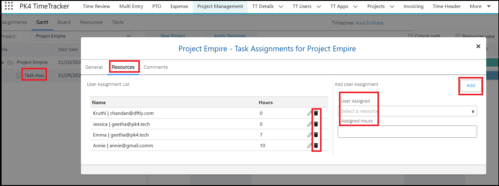 - Select the user from the user Assigned field and add the Assigned hours. click the Add button,