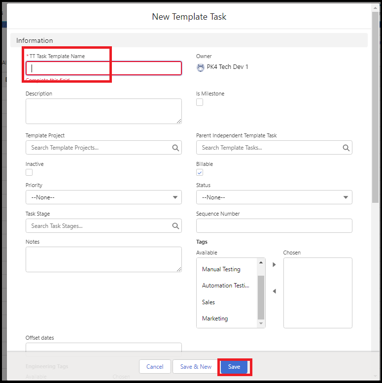 - Enter the Task Template Name.