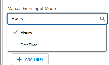 - If you select the Hours option, the Manual Entry component displays the Start Date & Time and Hours Worked fields for manual entry.