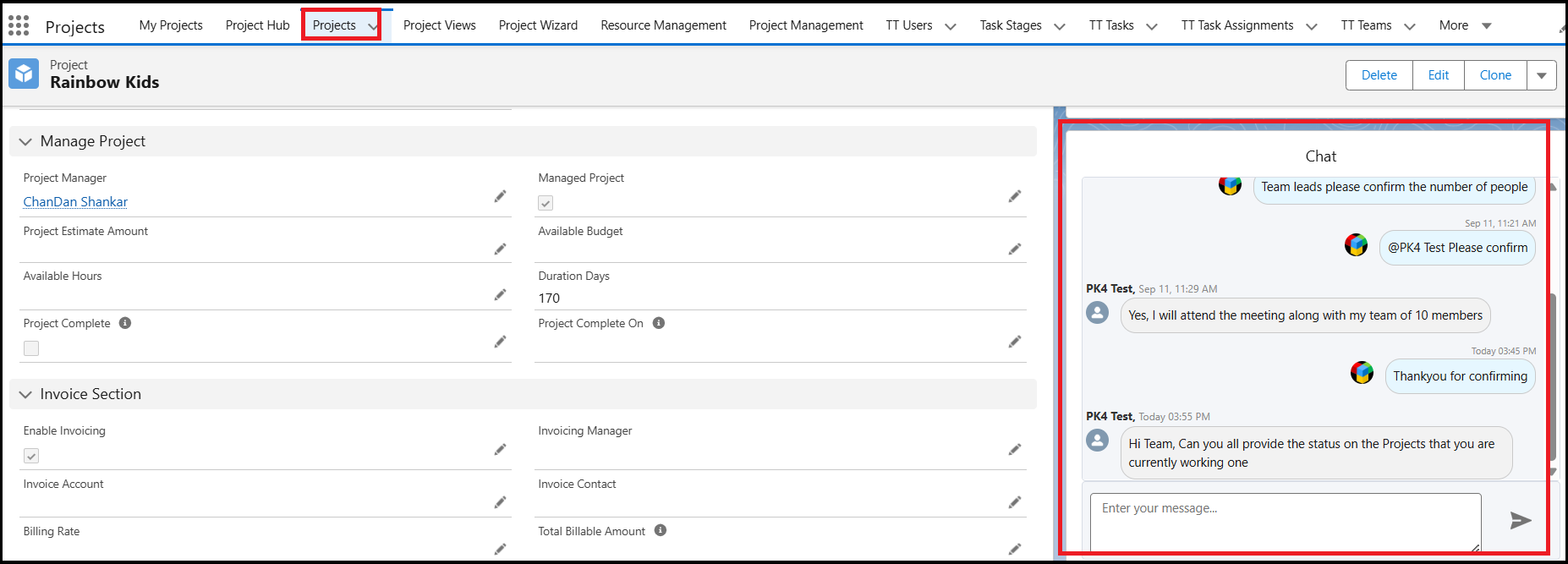 - You can now access the chat page directly from the Project view page in the Projects object. This makes it easy to collaborate with your teammates without leaving the project you’re working on.
