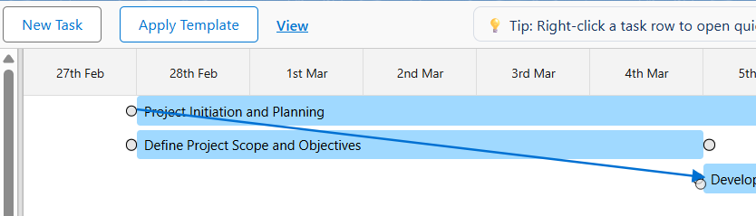 - Drag a line from the end of the first task bar to the start of the second task bar.